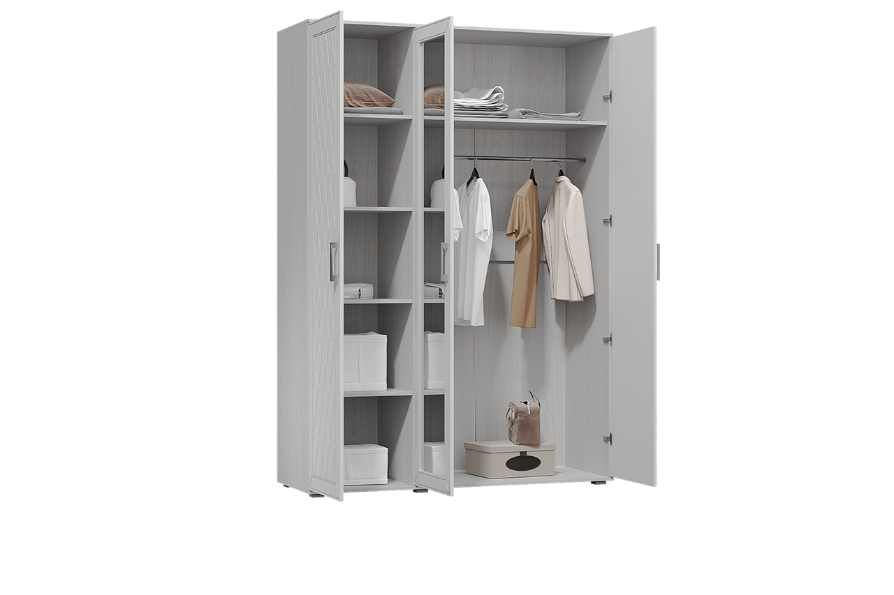 Великолепная модульная спальня «София» белого цвета современного дизайна с элементами классического декора. Сложная фрезеровка на фасадах выгодно подчеркивают